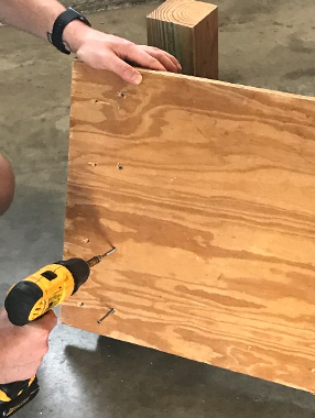 Next, flip the base over and attach the thick pieces of wood to the base with the screws from the bottom side I used 4-3" long screws for each piece.
